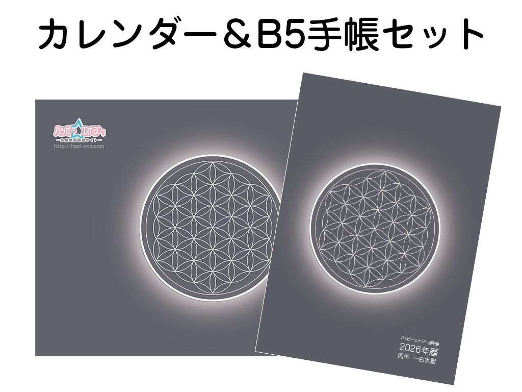 2026年ハッピー☆エナジー遁甲盤A4カレンダーと【B5(大)】2026年暦遁甲盤手帳のセット。